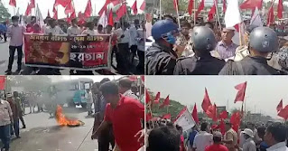 তনুশ্রী চৌধুরী,পানাগড়:- মঙ্গলবার সাধারণ ধর্মঘটের দ্বিতীয় দিনে বন্ধের কোনো প্রভাব না পড়লেও মঙ্গলবার দুর্গাপুরের মুচিপাড়ায় জাতীয় সড়ক অবরোধ করে বিক্ষোভে সামিল হলেন বাম কর্মী সমর্থকরা।